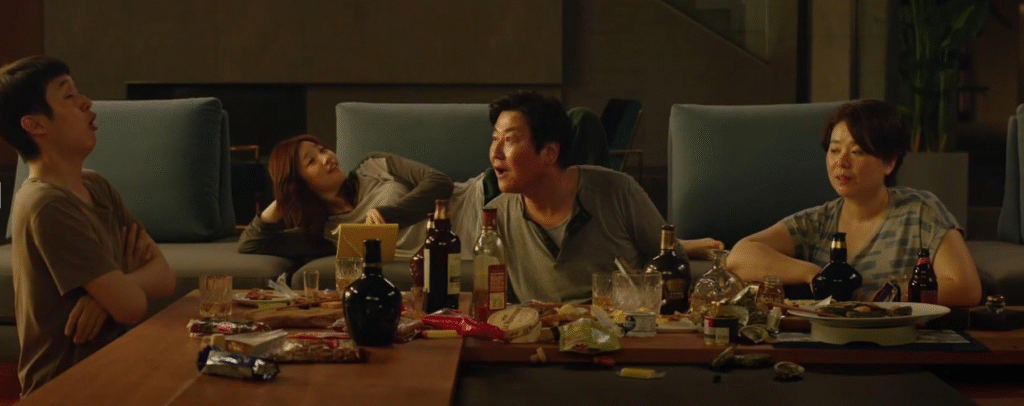 One by one, members of the Kim family cleverly infiltrate the Park household by securing positions as employees — tutor, art therapist, driver, and housekeeper — all while hiding their true relationship from their employers.
