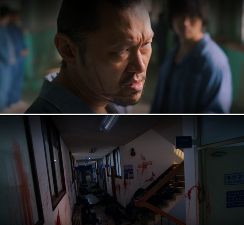 Instead, he saves Tae-jung and punches the corrupt warden —