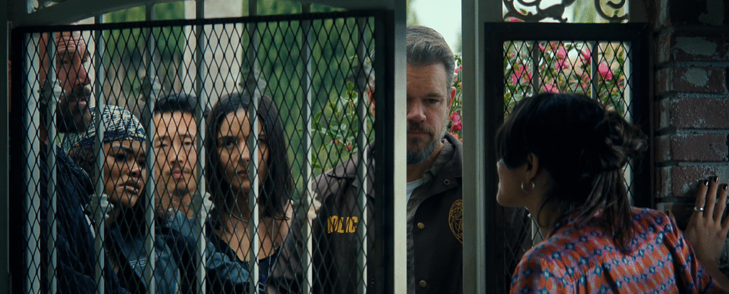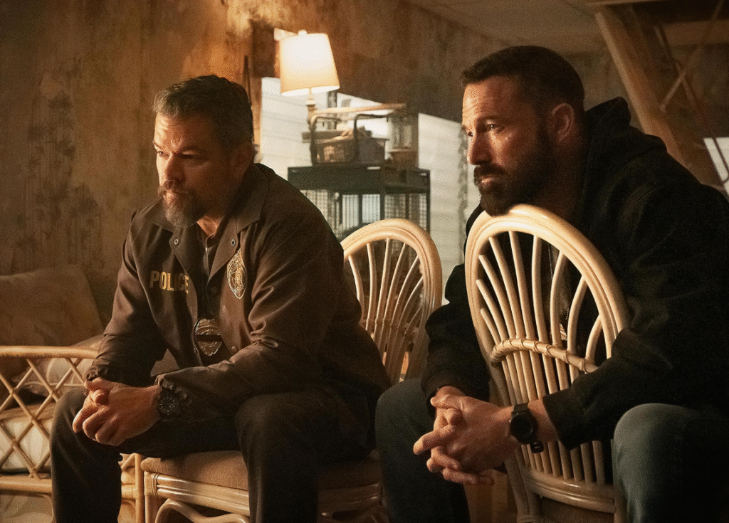 Matt Damon and Ben Affleck don’t need to sprint for this film to function. Their dynamic—plus Steven Yeun’s controlled presence—makes the paranoia believable.