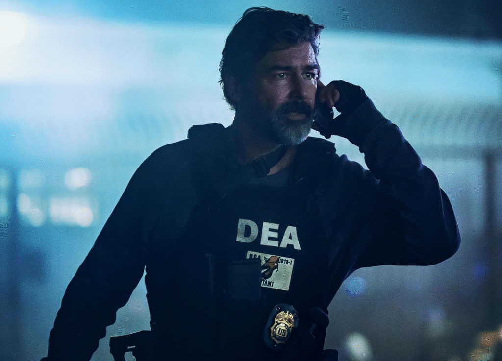 Eventually, the conspiracy points to Mike Ro (Steven Yeun) and a DEA-linked figure (Matty Nix, played by Kyle Chandler). They are tied to Jackie’s murder and the attempted theft of cartel money. The final confrontation ends with arrests and deaths, and the operation closes under official control.